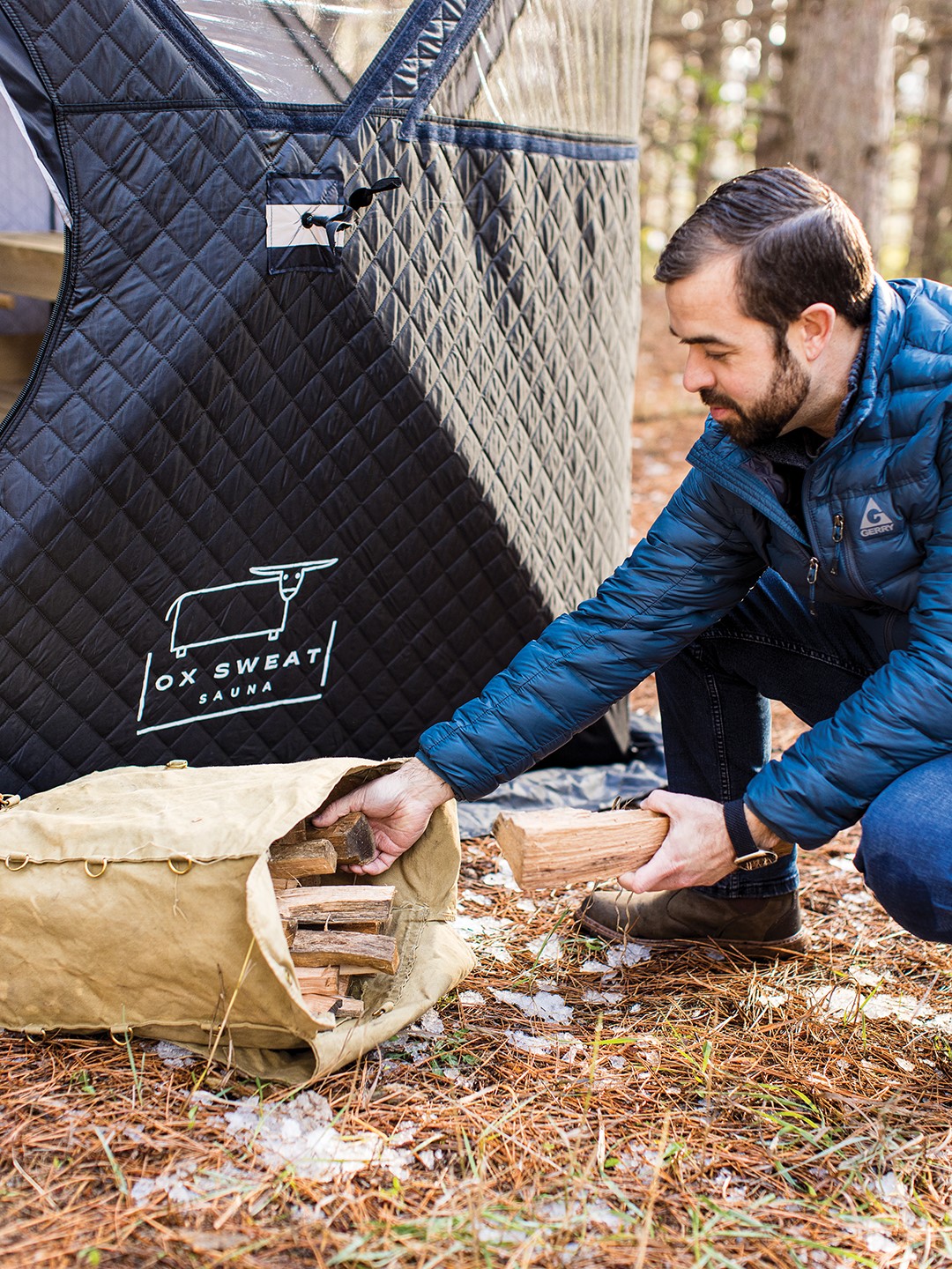 Wondering how a portable wood-fired sauna works? The process is straightforward. Simmons says, “A lot of people use these on a regular basis at home, and a lot of people use these to go out and adventure in some very beautiful places in nature.”